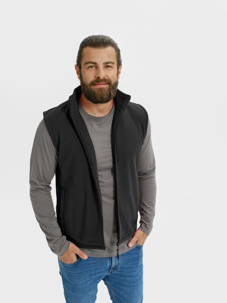 Minőségi varrott gyapjú mellény nőknek és férfiaknak egyaránt (unisex kivitel). A mellény elülső részén két cipzáras zsebbel van ellátva, az alsó szegélyt rugalmas zsinórral be lehet húzni. A mérettábla felhasználható a megfelelő méret kiválasztására. Magas súlyú 280 g/m2. A mellény nyomtatásra és hímzésre is alkalmas.