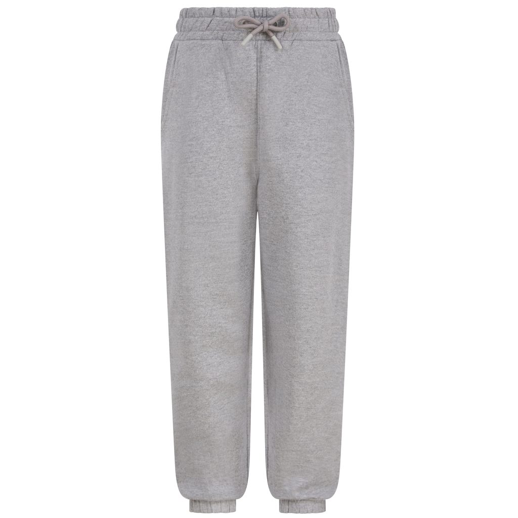 Klasszikus szabású melegítőnadrág, amely fiúknak és lányoknak egyaránt alkalmas. Környezetbarát módon készült, újrahasznosított pamut és poliészter felhasználásával. A derékpánt elasztikus és húzózsinórral állítható. A lábszár mandzsettája elasztikus és a bokánál összehúzható. Két lekerekített oldalzsebbel és egy hátsó zsebbel rendelkezik.