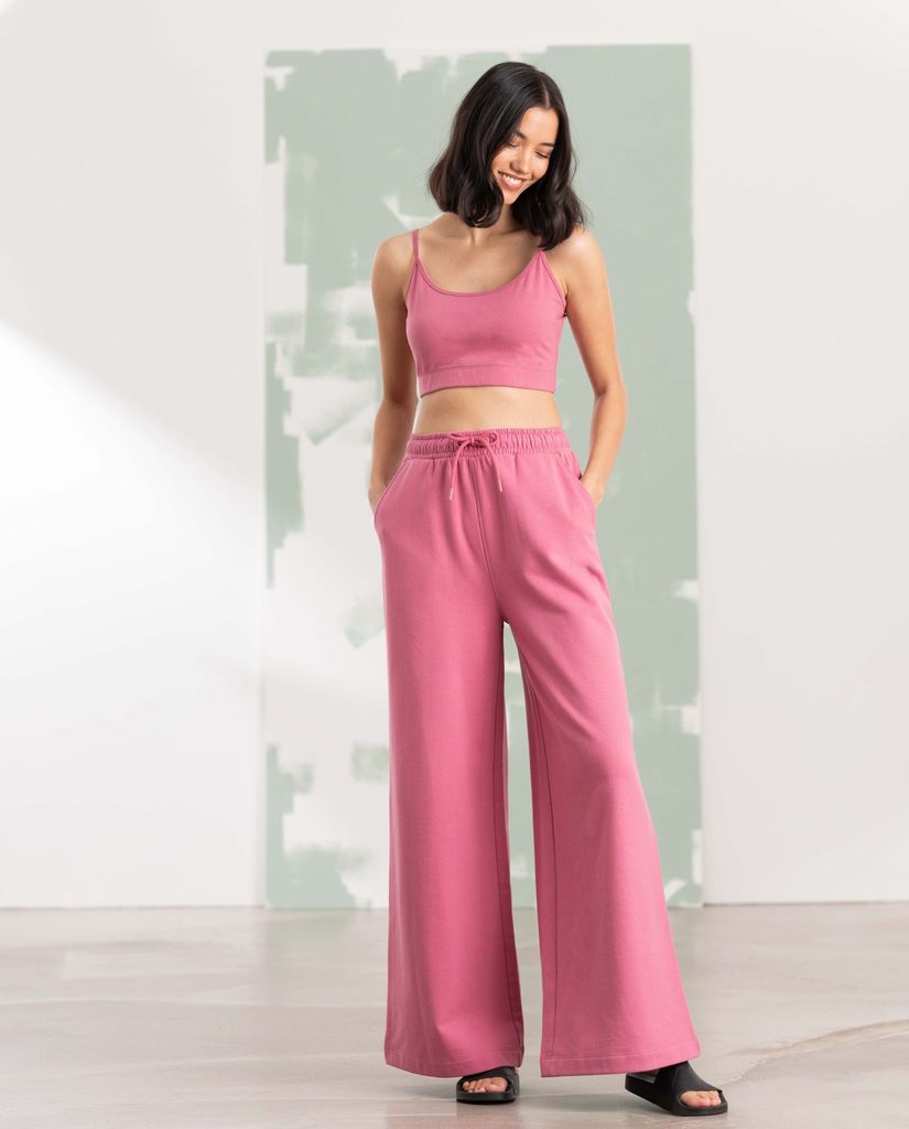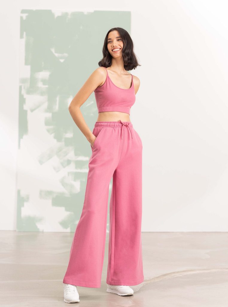 A divatos szabású, széles szárú női melegítőnadrág divatos szabással készült, és egy csipetnyi eleganciát kölcsönöz az alkalmi öltözéknek. A fenntarthatóság jegyében készült, kényelmes anyagból, amely megújuló (előzetesen újrahasznosított) pamut és újrahasznosított poliészter kombinációjából áll.…