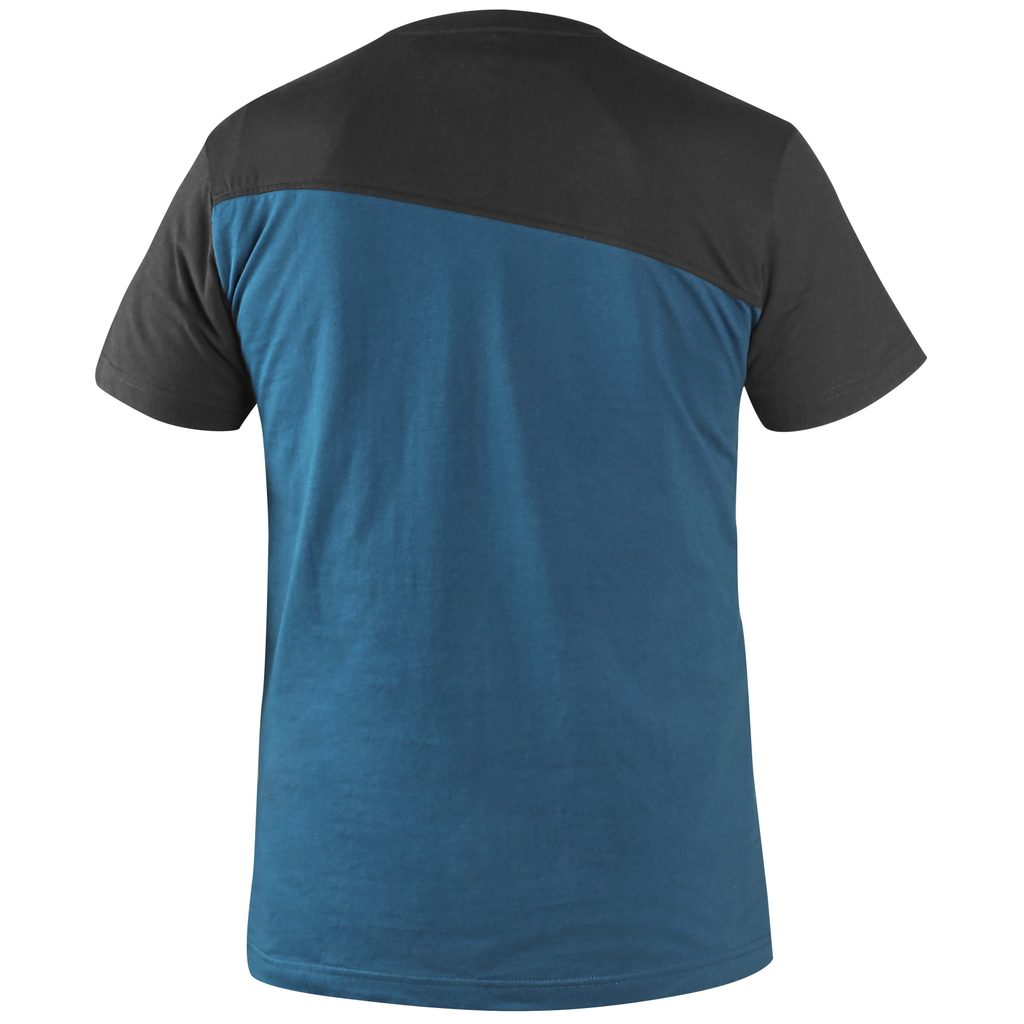 A stílusos férfi rövid ujjú póló kontrasztos két színű kivitelben készül, kényelmes klasszikus szabással, oldalvarrással és kerek nyakkivágással. Tartalmaz megerősített nyak- és vállszalagokat is, amelyek biztosítják, hogy a póló megőrizze formáját. A kellemes pamutanyagból, végleges szilikonkezeléssel készült póló puha, nagyon kellemes a bőrön, méretálló, nem bolyhosodik és ellenállóbb a szennyeződésekkel szemben. Ezért nem csak szabadidős, hanem munkás pólónak is kiváló.